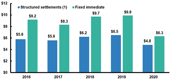 (2) Single premium contracts bought by property/casualty insurers to distribute awards in personal injury or wrongful death lawsuits over a period of time, rather than as lump sums.